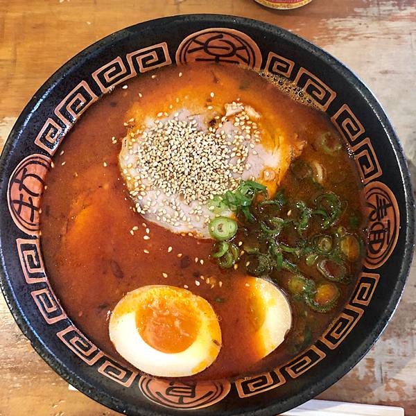 辛油拉麵,醇厚的豚骨湯底加上辣油,個人認為辣度指數只有🌟,口味真的很日本,包含鹹度🤣但是店家也貼心的貼出公告,如果你的口味較淡,可以請店家幫你減鹽,真的超貼心👍👍