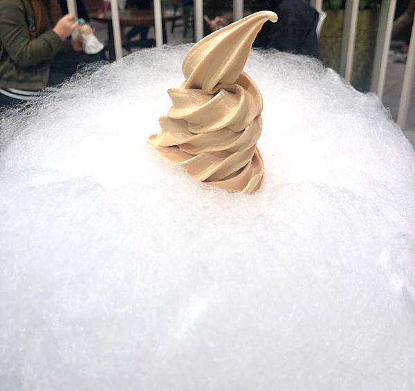 我們點了一個杯裝的招牌沖繩海鹽加上Mochi ,再加上一隻雙色(海鹽皇家奶茶)棉花糖甜筒🍦,只是店員不知道為什麼會把雙色冰淇淋弄成海鹽在下皇家奶茶在上我拿到時說實在的有點傻眼,可是基於不要浪費的前提,我就沒多做反應。