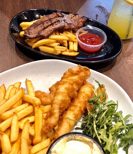 當初網路上看到廣告,今天就是衝著˙$5牛排而來的,當然必須點一份,另外朋友點了波隆那肉醬麵也是$5澳幣,但是怕大食怪吃不飽 ,所以又點了炸魚薯條(是有多愛吃炸魚薯條啊!)