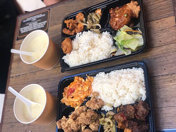 當天我們點了3個便當,他們的便當菜色蠻豐富的,肉類選項很多,有炸雞、排骨、燉牛肉、跟魚排等等,肉食動物超推薦他家的便當,因為可以選滿3種肉,是不是超級划算呢?除了肉類,他們家的滷白菜跟番茄炒蛋等等的菜也都很好吃,很下飯,很有台灣味,我超喜歡💕另外,除了白米飯,你也可以選擇加價換炒飯喔!