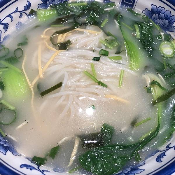 三鮮米線,裡面有青菜、蛋絲根海帶,湯頭很香濃,但是我覺得太鹹,米線很Q很彈牙,如果不要這麼鹹算是一碗好吃的米線,另外,米線湯裡有加香菜,不敢吃香菜的人要請廚房不要加。
