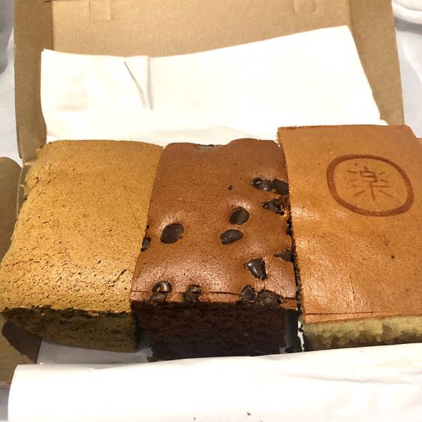 古早味蛋糕,相較之下,原味跟巧克力吃起來比較好,原味的香香甜甜、巧克力的有著濃濃的巧克力味,巧克力裡面還有巧克力豆,吃起來脆脆的,口感豐富;抹茶的口味我覺得不是很好,吃不到抹茶味。