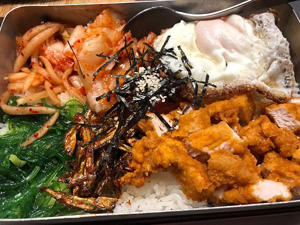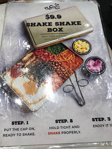 搖搖便當讓我很好奇,所以我就點了,但是我搖完沒有混合的很好,所以最後我還是用餐具拌勻,感覺有點像是石鍋拌飯可是沒有鍋巴的感覺。