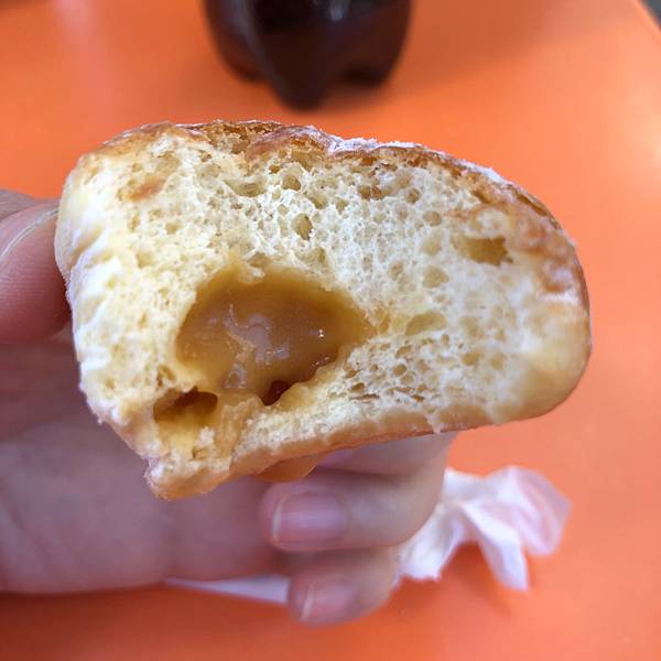 這個小麵包叫Caramel doughnut ,外層就像是甜甜圈麵包一樣,但是咬開之後裡面包著焦糖糖漿,這款小點心偏甜,但是焦糖中有加一些些鹽巴,所以不會過於死甜,愛吃甜食的朋友也可以吃看看。