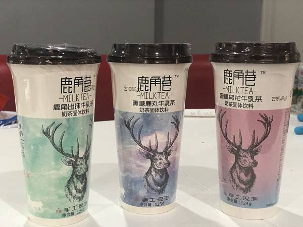 好不容易我終於在亞超看到,一共買了三個口味,有黑糖鹿丸牛乳茶、鹿角出抹牛乳茶以及蜜桃烏龍牛乳茶 。