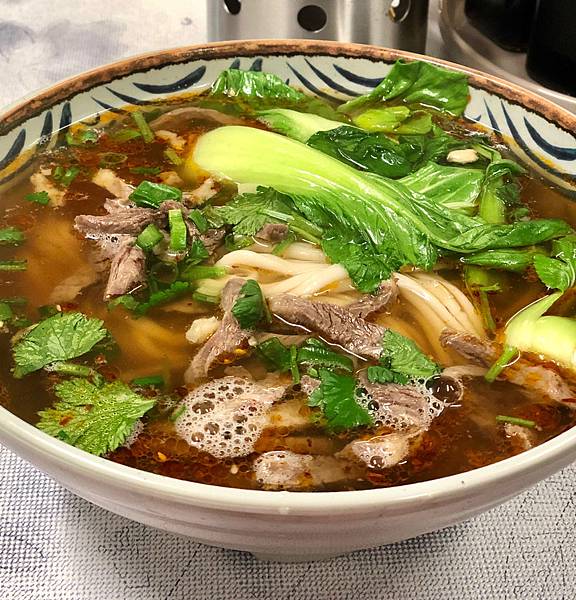 點了一碗老闆娘推薦點酸辣牛肉麵,第一次吃到酸辣口味的牛肉麵,蠻新奇的,不會太酸也不會太辣,牛肉是切成條的,麵條都是現場拉的,很有嚼勁,也不會因為我吃太慢就吸湯膨脹變軟爛,我超喜歡❤️