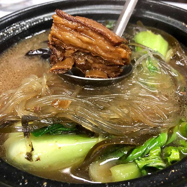 紅燒羊肉砂鍋,滾燙的砂鍋一送上來,馬上令人食指大動,帶皮的羊肉吃起來特別香軟肥嫩,濃濃的羊肉味對於我這種不怕羊羶味的人來說很好吃,裡面除了羊肉還有青菜、粉絲及海帶絲,吃起來就像是迷你羊肉爐一般,超好吃,但是害怕羊羶味的朋友不建議點。