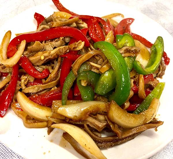 這道炒豬肚保准能讓你多吃兩碗飯,青椒甜椒及洋蔥拌炒這豬肚絲, 鮮甜的青菜甜味混合著調味的鹹香味,清脆的椒條搭上軟韌有嚼勁的豬肚絲,口感豐富,香氣濃厚,真的好好吃。
