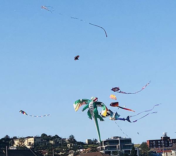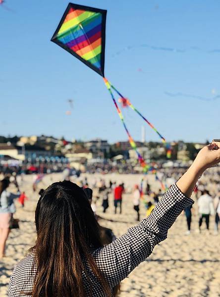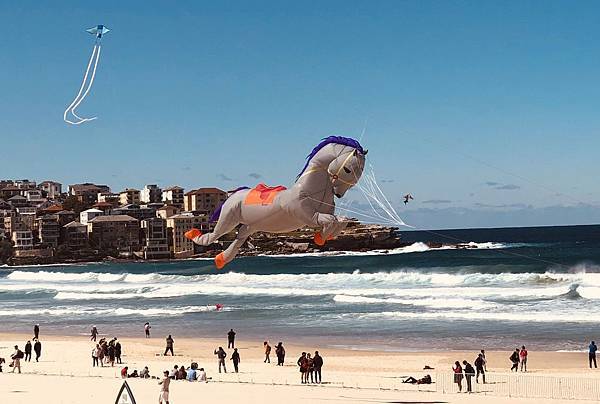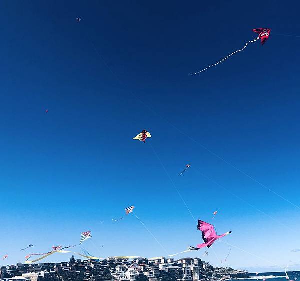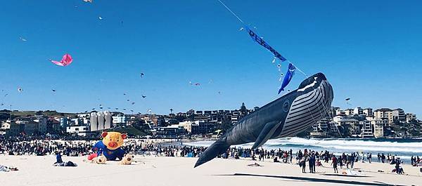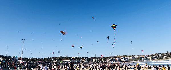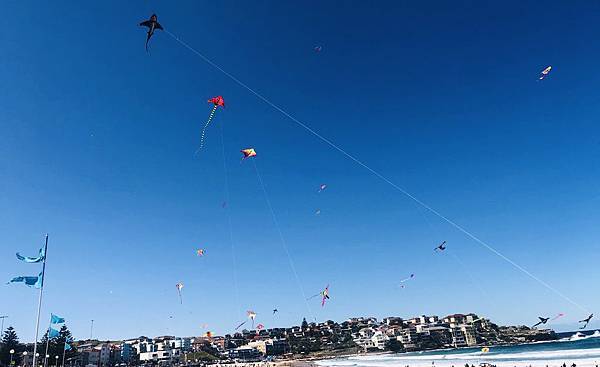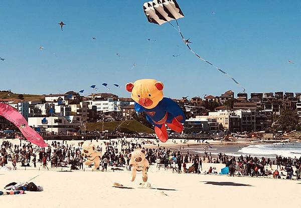 每一年的九月初,雪梨的邦迪(Bondi Beach)海灘總是會有一天特別的繽紛、熱鬧,大大小小、五彩華麗的風箏飛滿整個海灘上空。