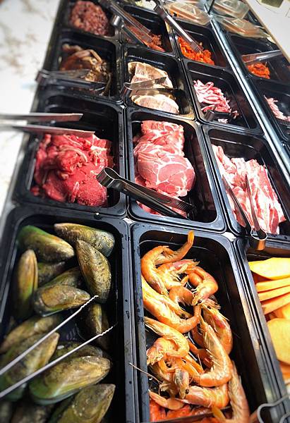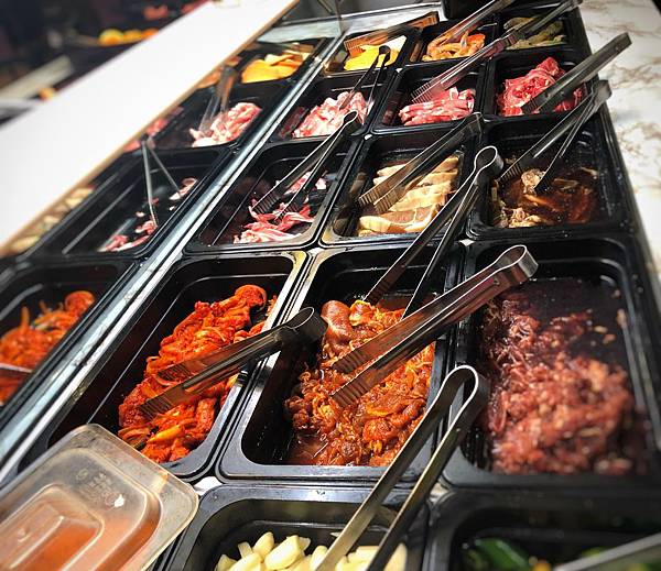 燒烤類也差不多有十幾樣可以選擇,除了基本的韓式醃肉之外,牛排、牛肉片、豬肉片、蝦子、淡菜⋯等,一樣是無限吃的,只是燒烤的肉品質很還好,吃粗飽還可以接受,但是很介意肉類品質的你,他們家就不太適合。