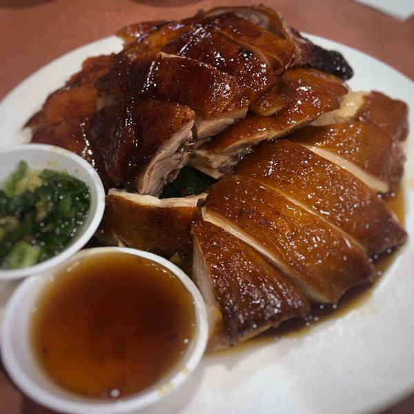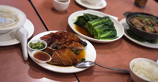 臘味雙拼可以自己選擇想要吃的,我們選的是燒鴨跟油雞,除了這兩樣,另外還有叉燒...等。在這邊我強力推薦他們的燒鴨,燒鴨的外皮酥脆又帶有油脂,鴨肉軟嫩不柴,鹹淡恰到好處,一口燒鴨一口白飯,你可以感受到鴨油香氣與米飯的甜味混合,讓人回味無窮;油雞吃起來很肥嫩不乾澀,帶著些許甜味的表皮軟嫩,入口即化,蘸著蔥油一起吃更能吃到它的美好。
