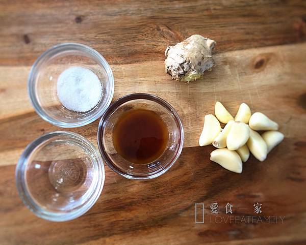 把糖和醬油膏約1:1和薑泥、蒜泥、水混和,可以依照個人口味調整,