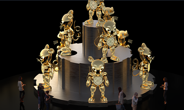 在First Fleet Park展示澳洲著名設計師Claudia Chan Shaw創作的大型2.8公尺高的黃金子鼠九燈塔,