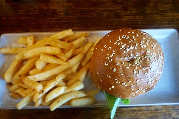 點了一個看起來很厲害的安格斯牛肉堡19.5澳幣再加上一份炸魚薯條10澳幣,點菜時服務員說炸魚薯條是小孩子的餐點,份量不大要不要加點其他的,我們猶豫了一下還是作罷,告訴他如果不夠再行加點。