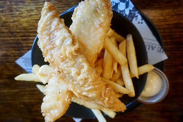 餐點上來後,我不禁想著幸好我沒有點太多,因為國外的簡餐總是會附很多的薯條,除了漢堡份量大之外,炸魚薯條整個是尖起來的!