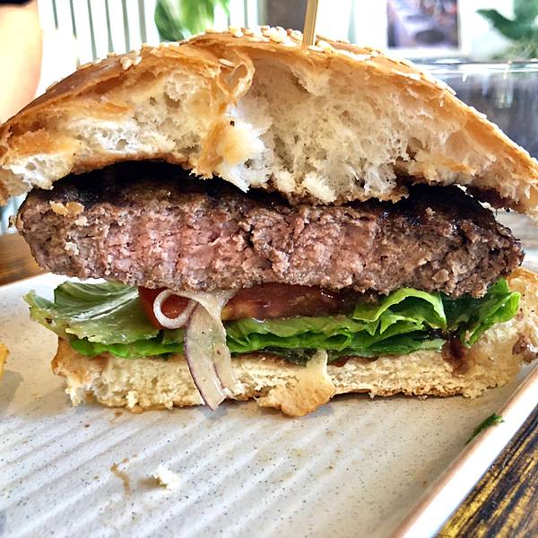 安格斯牛肉堡裡面有洋蔥、番茄、生菜夾著厚厚的安格斯牛肉在搭配上BBQ醬,一口咬下先是鬆軟的漢堡麵包再來是清脆爽口的生菜慢慢的帶出番茄的酸甜然後安格斯牛肉的肉汁噴發混合著醬汁,天啊!超滿足!
