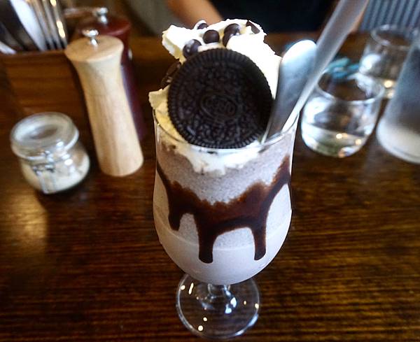 飲料我們點了一杯小杯拿鐵3.5澳幣跟一杯Oreo Milkshakes7.5澳幣。拿鐵的口感溫順活潑,價格親民,喜歡來杯咖啡的朋友,他們家的咖啡也很不錯!oreo奶昔底層的奶昔不會太甜,淡淡的oreo香味充斥在口腔內,感覺很幸福,可惜的是,喝到後面,鮮奶油融化混合在奶昔中讓整個爆甜,所以我個人不是很喜歡,但是螞蟻人應該可以接受。