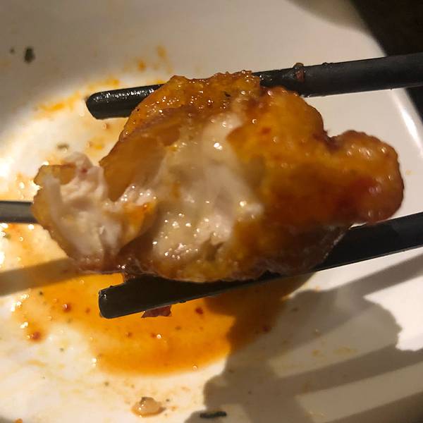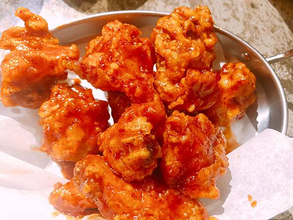 蜜汁辣味炸雞,甜甜辣辣的超開胃,炸雞炸的外酥內嫩,真的是啤酒最好的朋友!因為我們只有2個人所以只點半份,可是份量也不小,大約有10塊。