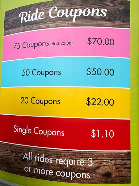 Ride Coupons是買越多越划算,我跟朋友們share 50點的點數,每個遊樂設施大約花費6-7點,來到電影場景常出現的嘉年華會怎麼能不試試看他們的遊樂設施呢?
