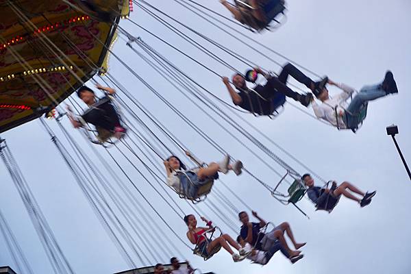第一站就先來一個天女散花,不要小看這個遊樂設施,本來覺得應該就是小兒科,小朋友都敢玩,不會恐怖啦!可是當人一坐上鞦韆,機器慢慢往上升不得不說真的超可拍的啦!這個天女散花完全不能跟國內的相較,旋轉的速度快到我都頭暈了,剛開始還拿著相機開心地拍照,後面根本緊抓著繩索不放😱