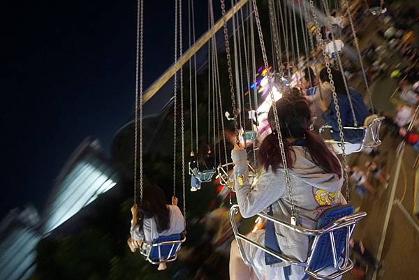 接著又試了很像超人在空中飛的遊樂設施,一樣超暈的啦繞了一圈,我只能說澳洲的遊樂設施都非常的瘋狂,就連摩天輪都轉的無敵快