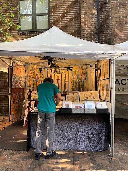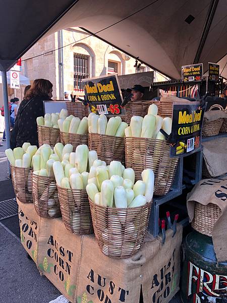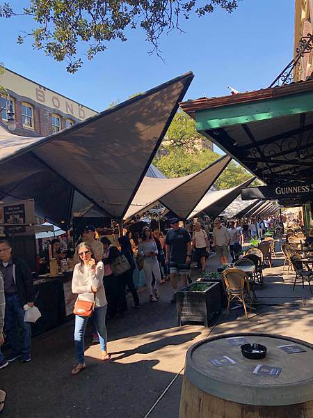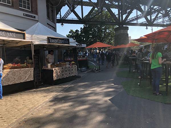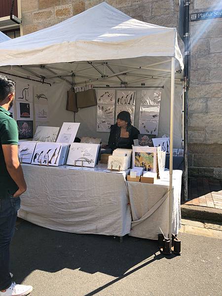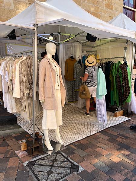 The Rocks Market每個禮拜五、六、日都有攤子擺設,白白的小帳篷沿著蜿蜒的街道擺設,商品玲瑯滿目。