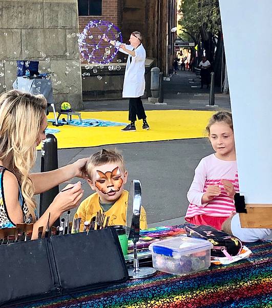 在飲食區的旁邊,有泡泡可以看跟玩,還有免費的人體彩繪可以體驗,所以很推薦有小朋友的家長們來這邊走走,讓小朋友放電一下。