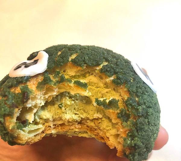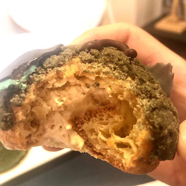 一樣是茶系列的抹茶泡芙,造型看起來是青蛙🐸,外皮口感一樣,但我覺的抹茶的茶香比伯爵茶更濃一點,微甜不膩,內餡一樣是滿滿的填充了泡芙內部!