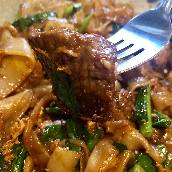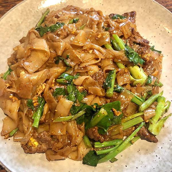 牛肉炒粿條,醬汁味道甜甜的帶有魚露的味道,粿條本身QQ軟軟的但不是有嚼勁的那種,牛肉不乾柴,青菜的脆度保持的很棒,整體份量蠻大的,牛肉也蠻多塊,所以蠻值得推薦!