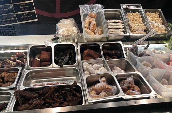滷味攤該有的他一樣都不少,種類還算多元,青菜的種類也蠻多的,除了檯面上的之外,還可以另外加肉片。