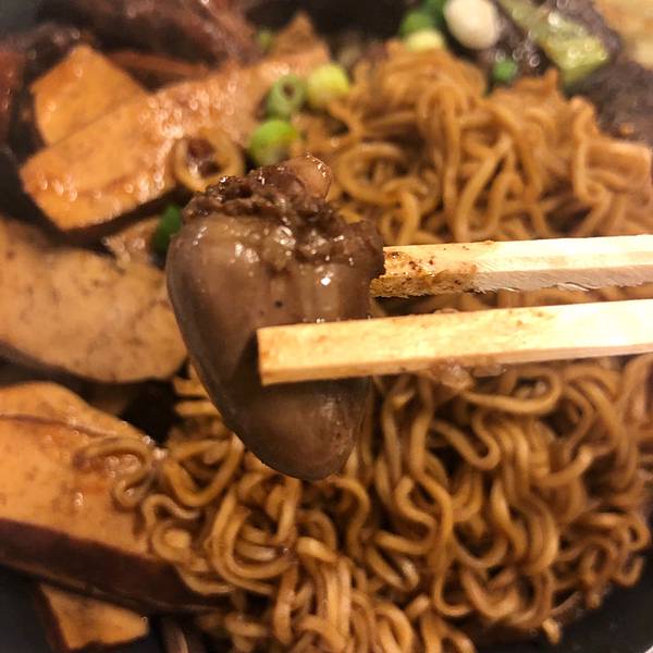 我點了滷味不可或缺的王子麵、豆皮、豆乾、海帶、米血、雞心⋯,他們家的滷味是比較清爽的那種,滷料上巴著滷汁,不像我習慣吃的滷味是會淋上一層滷味醬汁,但滷汁的味道還不錯!其中我最愛的是滷豆乾,豆乾滷的入味,軟軟嫩嫩的口感,搭配上脆口的海帶,好吃😋豬耳朵的份量很多,大大一片只要3塊錢,我覺得超划算,而且吃起來完全沒有豬皮的腥味👍米血的口感我就比較不愛,爛爛的不Q,是屬於那種會散掉的米血,但是解饞吃一下還是不錯!