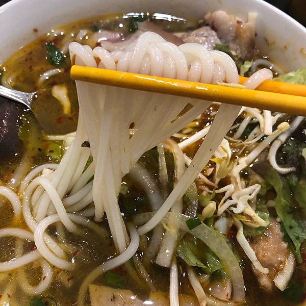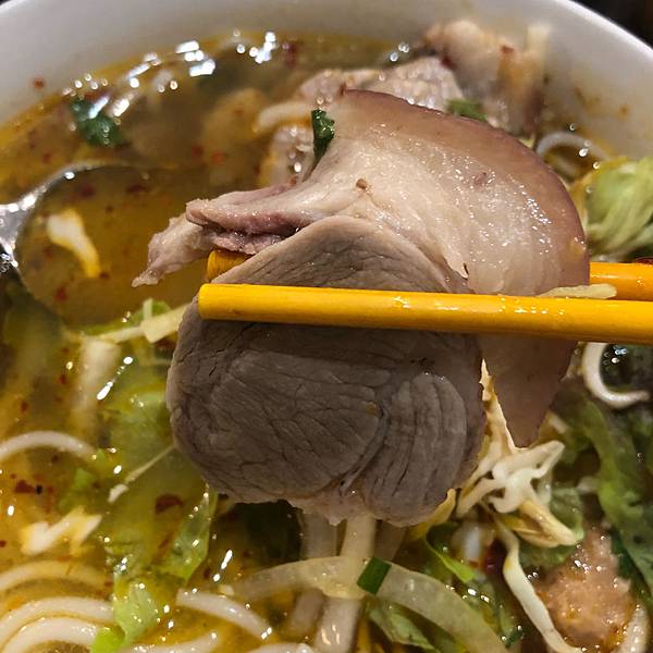 而我點了一碗辣河粉,愛吃辣的朋友大推他們的辣河粉,微粗的河粉口感很棒,濃郁的湯頭加進菜盤(生菜、豆芽等等)擠上檸檬汁更是鮮甜, 肉的份量也很多,每一塊都有厚度,只是我會稍稍覺得不夠辣,但可以再自行加辣!推👍