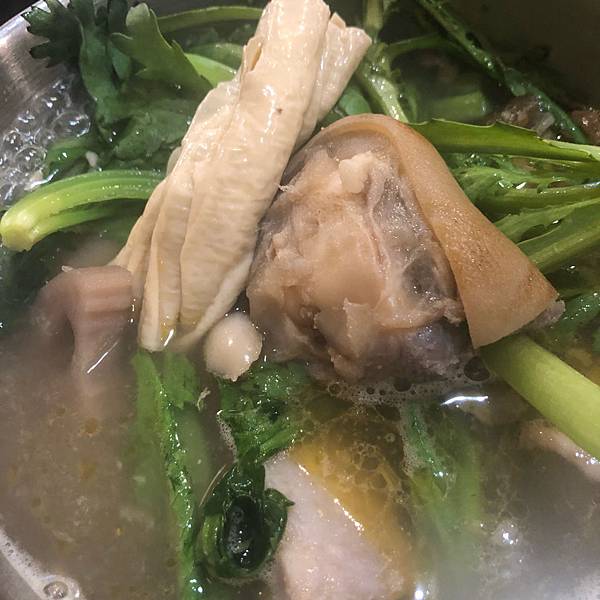 還有,冬天快到了,所以他們也有推出火鍋,可以依照人數點大中小鍋,我們點了一鍋羊肉鍋(小)火鍋會附一盤菜盤跟一盤雞蛋麵,份量男生吃綽綽有餘,本來以為小鍋的羊肉爐應該就只有兩三塊羊肉而已,結果出乎我們的意料,羊肉也給的很多,一鍋大約6-7塊羊肉左右,每一塊羊肉都是帶皮的那種,吃起來很厚實,肉質也蠻嫩的,別於台灣的羊肉湯,他們的羊肉鍋裡面加了滿滿的芋頭, 所以湯頭喝起來都有濃濃的芋頭味,芋頭控千萬別放過!