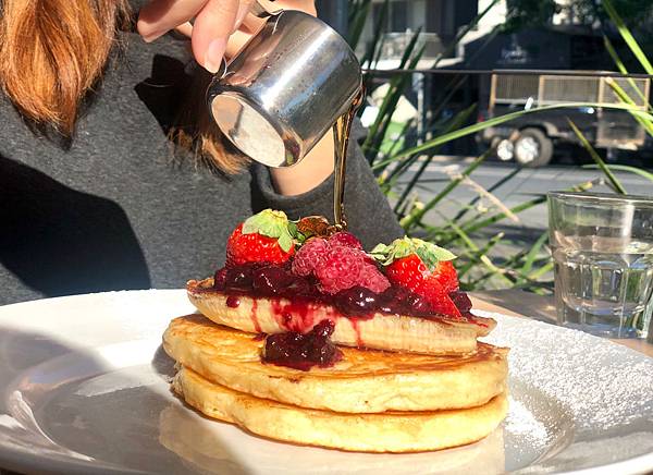 莓果鬆餅上面的莓果都是新鮮的水果,厚實的鬆餅淋上楓糖漿,水果與果醬搭上香甜的楓糖鬆餅,超級滿足,他家的鬆餅真的很好吃,吃起來不會有麵粉味或是鬆餅粉味,反而有著蛋香味,扎實的鬆餅飽足感十足,非常推薦莓果鬆餅👍