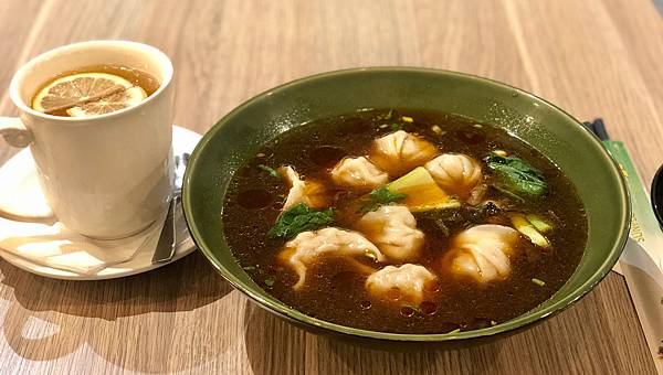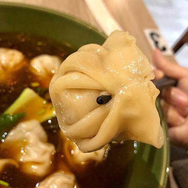 牛肉湯餃的牛肉湯,我覺得湯頭普通,有淡淡的牛肉味,搭配水餃一起吃剛好,但只喝湯的話我覺得比較鹹一點,水餃吃起來也是普通,水餃皮Q彈裡面的水餃內餡扎實,整體來說還不錯但不到非點不可的程度。
