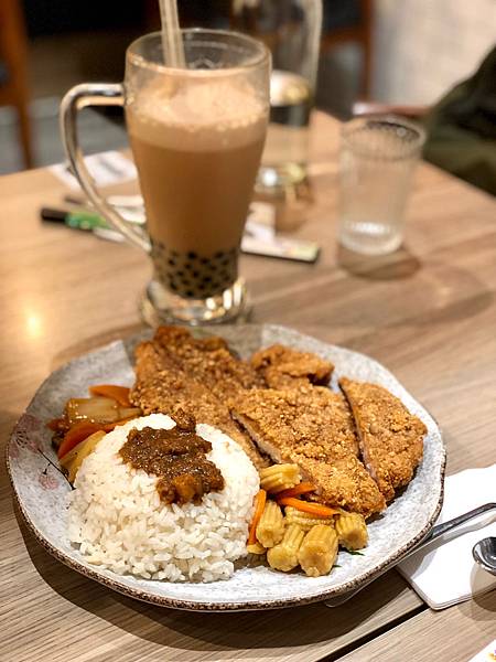 珍珠奶茶的部分,奶茶是使用奶精的奶茶,不難喝,可是我個人比較偏愛鮮奶茶所以會覺得奶茶有點膩,珍珠的口感是軟Q有嚼勁的那種,如果可以接受奶精奶茶的話,搭配起來是一杯蠻好喝的珍珠奶茶。