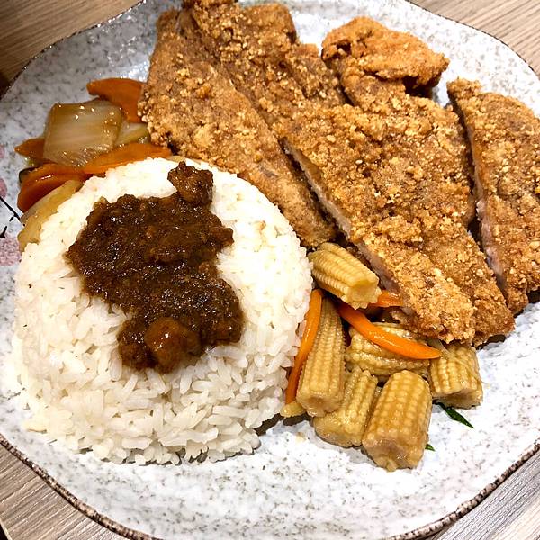 不得不說他家的排骨飯很厲害,我覺得吃起來有點像正忠排骨飯的感覺,排骨炸的酥脆,裡面的肉又不乾柴,重點是調味的很棒,搭配上白飯一起吃,肉汁混合白米飯,超棒,大推👍