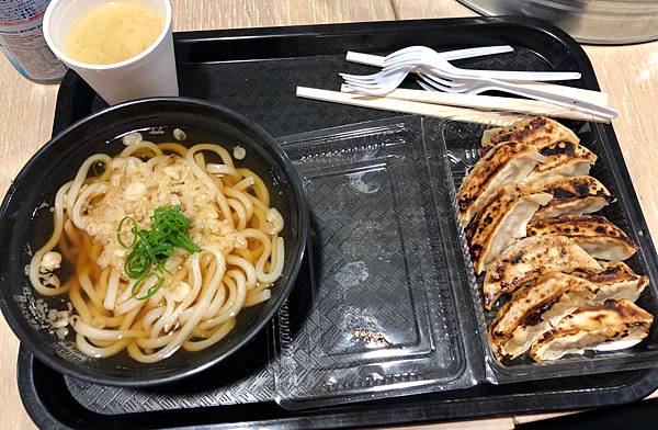 烏龍麵套餐裡面的餃子蠻好吃的,只是煎到焦掉很扣分,不然裡面的高麗菜豬肉餡我覺得吃起來很唰嘴又不膩,我很愛,他家的烏龍麵也蠻不錯的,湯頭很甜很清淡好喝,麵上撒了許多的炸蝦的麵衣,吃起來增加口感也很好吃,喜歡清淡口味的很推薦👍