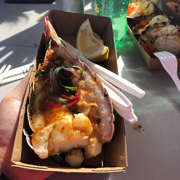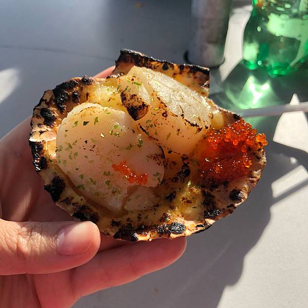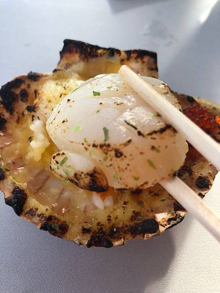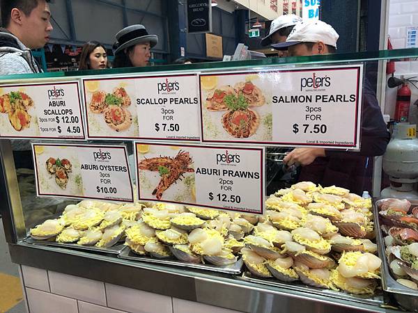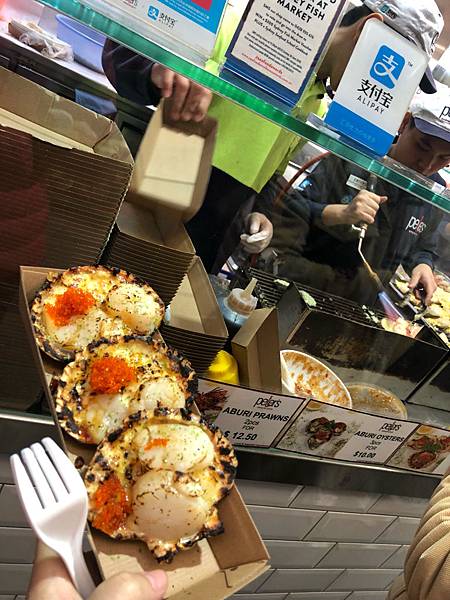 除了龍蝦大餐我們還買了焗烤扇貝3顆12澳幣,我覺得價錢蠻便宜的,現點現烤,等待的時間聞到燒烤已經起司的香味,讓我不禁口水直流。