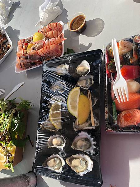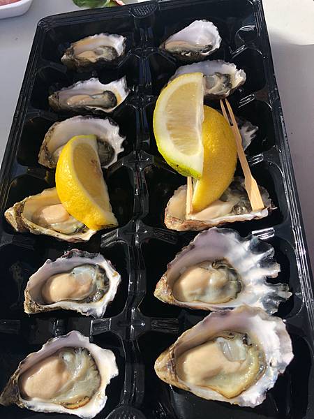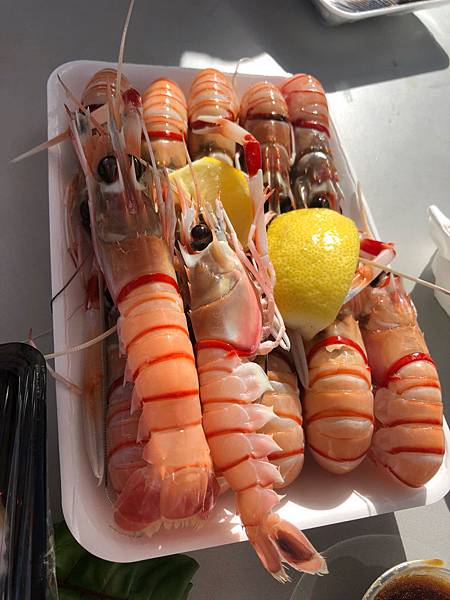 除了熟食之外,來到漁港怎能不試試新鮮的生蠔以及甜蝦,生蠔都是一盒一盒在賣,吃起來蠻新鮮的,但是我還是覺得澎湖生蠔比較甜,甜蝦的部分真的蠻新鮮的,只是蝦殼蠻硬的,一口氣吃了這麼多生蝦生蠔,真的超爽👍