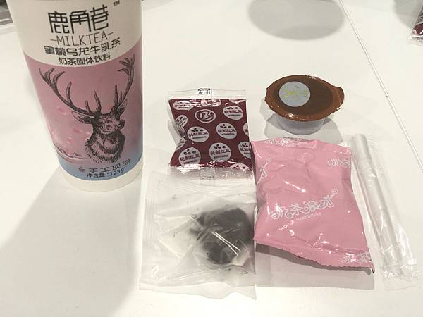 好不容易我終於在亞超看到,一共買了三個口味,有黑糖鹿丸牛乳茶、鹿角出抹牛乳茶以及蜜桃烏龍牛乳茶 。