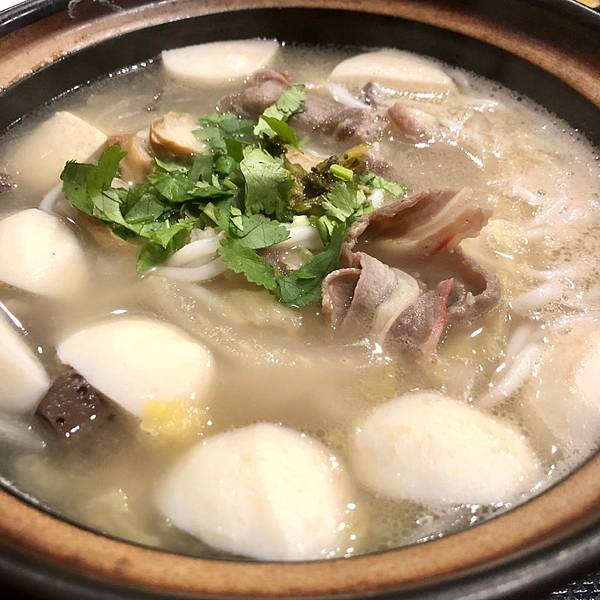不得不說,他家的米線真的好好吃,不管是酸菜肥腸還是豆腐魚頭,酸菜肥腸的湯頭就像是酸菜白肉鍋一樣,香濃的酸白菜味卻不會過酸,喝起來喝順口,裡面除了米線之外還有一些切半的魚丸、豆腐、碎塊豬血、豬肉片跟肥腸,整體搭配的很好,附在旁邊的香菜及榨菜加進湯裡,更能提出酸菜湯的甜味,懷念酸菜白肉鍋的朋友千萬別錯過這一鍋👍