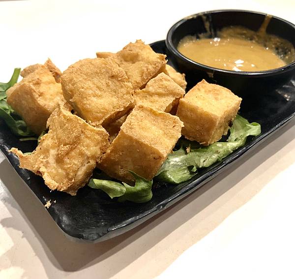 重頭戲就是臭豆腐啦!在澳洲見到臭豆腐讓我不禁欣喜若狂,點了一份,少了台灣泡菜感覺就是視覺享受缺了幾分,好奇的夾起一塊豆腐,聞了一下?沒有臭味啊,蘸了一下沾醬一口放進嘴裡我差點吐出來,超級無敵臭,我還以為是腐乳醬的醬汁竟然是臭醬,臭豆腐的臭味來源就是這碗醬料,第二口我試著蘸少一點,習慣了這個味道後倒也不難吃,只是還是不太喜歡這樣的臭豆腐!