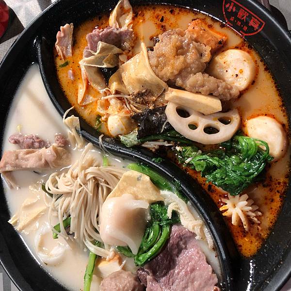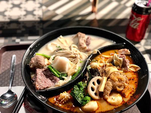 第一次看到麻辣燙的鴛鴦鍋,真的蠻酷的,我們的湯底選擇,一個是紅湯另一份就是原味的湯底,廚房會自己幫你將材料分成兩半。