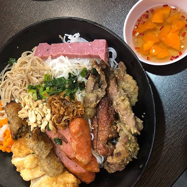 簡單看過菜單,朋友點了一碗乾的河粉裡面有許多配料 但都是火鍋料類的,淋上酸酸甜甜的醬汁,在拌一拌,很開胃。