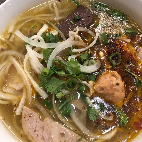 而我點了一碗辣河粉,愛吃辣的朋友大推他們的辣河粉,微粗的河粉口感很棒,濃郁的湯頭加進菜盤(生菜、豆芽等等)擠上檸檬汁更是鮮甜, 肉的份量也很多,每一塊都有厚度,只是我會稍稍覺得不夠辣,但可以再自行加辣!推👍
